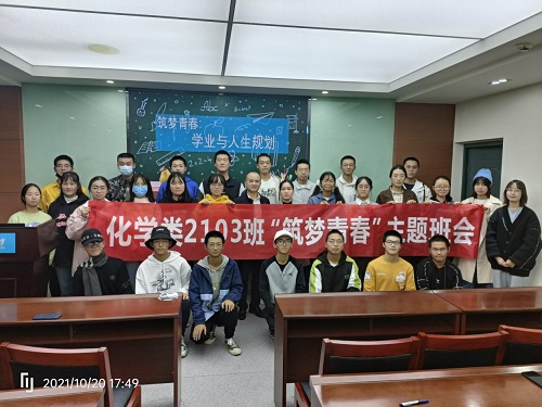 化学类2103班于化工楼B106会议室顺利举行第一次班级活动。本次班会以“筑梦青春:学业与人生规划”为主题,帮助同学了解“规划”在大学生活中的重要性,指导同学们制定自己的人生规划。此次班会邀请到了经典三级