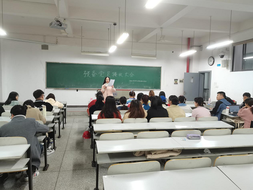综合楼112教室开展了预备党员接收大会暨党课学习教育活动。本次大会旨在壮大化工党支部党员队伍,为支部将来的发展打下坚实的基础。此次大会由张懿同志主持,李鸿燕同志记录,支部全体党员同志、预备党员都参与其中。