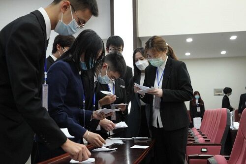 本次大会共有四位第三十九届学生会主席团候选人,在经过了精彩的竞选演说后,大会正式代表根据主席团候选人的简介、竞选演说及日常表现等填写选票并在会场工作人员指引下有序投票。在总监票人、监票人的监督下,总计票人、计票人当场清点票数,现场唱票并统计结果。本次大会共差额选举出三名主席团成员,分别为马路遥、杨婷、卢卓然,并召开经典三级