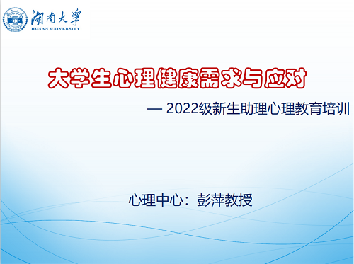 心理中心彭萍教授通过腾讯会议面向全校新生助理开展了“大学生心理健康需求与应对”主题心理教育培训,经典三级