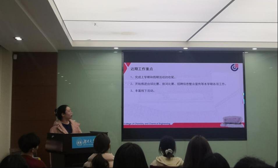 会上,朱安苹同学还进一步对各部门目前工作提出了改进意见,督促各部门成员提高工作效率,各项工作依照规划按时推进。希望研会成员在新学期的工作开展中加强责任意识,不断提升个人综合素质及工作能力,平衡好科研与学生工作。