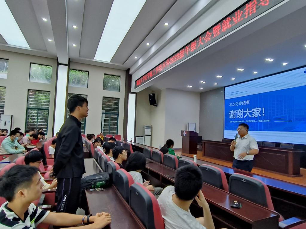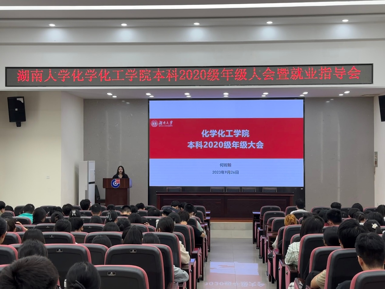 本科2020级于新化工楼D区报告厅召开了本科2020级年级大会暨就业指导会。本次会议由化工院本科2020级辅导员何妮翰主持,2020级全体本科生参加。