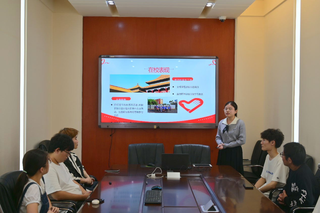 个人汇报环节中,同学们精神状态饱满,从入团动机、理论学习、自身专业学习、社会实践活动以及存在的不足和今后努力的方向等方面进行个人汇报,彰显了湖大学子实事求是,敢为人先的处世态度,也彰显了青年学生朝气蓬勃、勇于进取的新时代风貌。随后的评委提问环节中,三位老师首先针对同学们的入团动机进行了再次考察,严格按照团员标准对同学们在政治、品德、工作、作风、纪律等方面考察并提出要求,并根据同学们的不足之处提出了意见与建议。