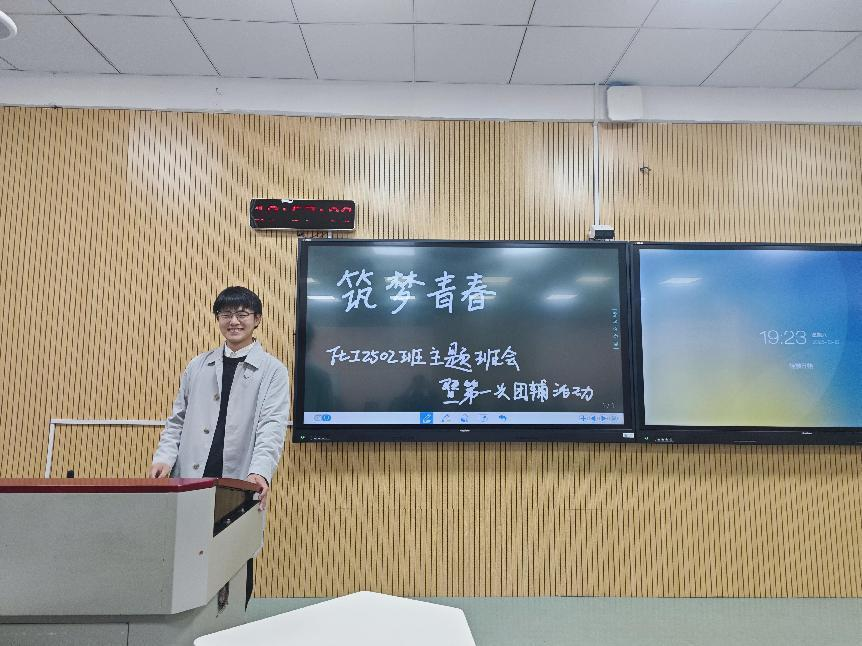 10月18日晚19:00,华灯初上,化工2502班全体“萌新”齐聚综合楼智慧教室,在班助的带领下,用一场洋溢着青春欢乐的班会和团辅活动,为初识的彼此按下“加速熟”按钮。25位同学、25张笑脸,在LED环屏光芒下交织成一幅“青春同框图”。