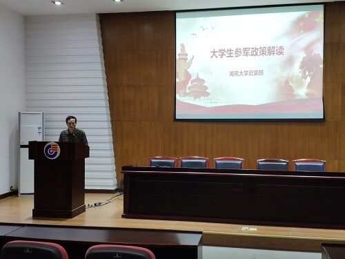 应征入伍不仅是国家法律规定的光荣义务,而且对于个人提升也大有裨益。何老师把他在部队的经历向同学们娓娓道来,讲述了参军对于个人顽强意志的磨练,纪律意识的培养,个人素质的提高等好处。他说:“军队的经历是大学生走入社会的机会,有利于同学们的成长,多年后还会成为难忘的美好记忆。”
