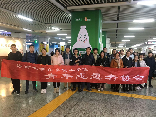 青年志愿者协会组织志愿者在到长沙地铁站开展志愿服务系列活动,活动收获圆满成功。