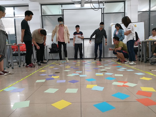 这次团体活动主要以游戏的形式展开,活动开始前已将小组分好,以小组竞争方式比拼。第一个游戏是“别动,脚下有地雷”,在规定区域内布满小纸条,小组内成员一人蒙眼,一人指挥,规定时间内走完全程踩到纸片最少的小组获胜,游戏中大家不仅展示了独特的走位令同学们捧腹大笑,而且也体现了小组成员之间强烈的信任感与默契度。第二个游戏为“我来保护你”,成员中一人佩带尾巴,一人防御,两组对抗,先扯下对方尾巴的小组获胜。游戏过程中为了胜利,同学们展现出了自己的速度与激情,体现了自己不同的一面,转瞬之间的敏捷令大家大吃一惊。最后一个游戏为“到底对不对”,每组提问猜测主持人提卡上的词语,主持人只可回答“是”或“不是”,若猜到可抢答,采用计分形式,分高组获胜,给出的词语都很日常,同学们天马行空的猜测令大家忍俊不禁。游戏过后王紫葳同学发表了自己的感受:“日常的学习生活使大家感到繁忙枯燥,这次活动的举行正好给同学们一个调节。游戏虽小,但和大家玩的都很开心,很有趣。更使同学们间的感情更进一步,我认为很有意义。”