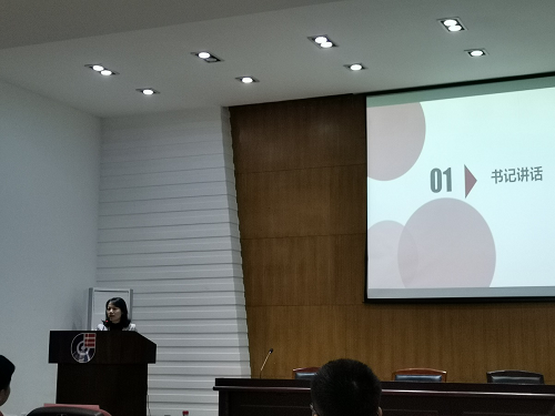 党委副书记范媛吉老师走上了讲台。作为此次会议的第一发言人,范媛吉老师对我们提出了要求,寄予了许多希望。她说,“我很高兴与大家相聚在这里,因为我所面对的正是学生群体中最活跃,最有责任心的那一部分人。加入学生会会使我们在潜移默化中提升自己的综合能力,这些对我们今后的发展成才都有至关重要的作用。我希望每一个同学都能认真对待自己的岗位,各司其职,无愧于大家对你们的信任。”