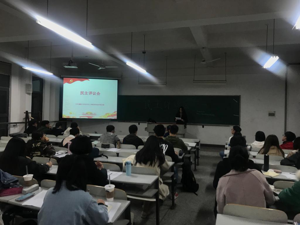 首先,由党支部副书记陈简同志传达本次会议精神,并简要介绍会议流程。在新发展的八名同志为大家朗读了民主评议会具体实施方案及要求后,由党支部副书记陈简同志带头开始进行民主评议党员。作为正式党员,各位同志从自身理论学习、专业学习、学生工作等各方面进行批评与自我批评。多数同志表示自身理论知识学习不够深入,仅仅停留在表面;学习强国的学习还需更加用心,应把重点应放在提高觉悟而非注重分数;党支部的活动建设应更加丰富多彩,以提高同志们的参与积极性。其他党员同志根据自己的日常观察及接触对其进行评议批评,提出了改进的具体建议,同志们互相学习、交流借鉴,使每一名党员同志在政治素质、思想素质上得到一定提高。