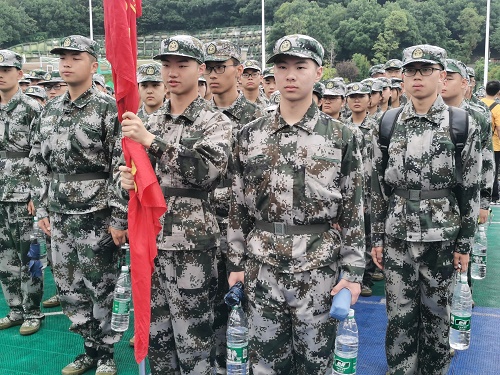 的新生们于荫马塘集合整队,化工院2020级辅导员宋天棋、各排面教官以及各班新生班助理全程参与,顺利完成了十五公里的列队行军。