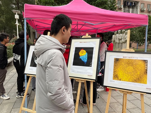 研究生会承办的第一届“微镜头下的化学”摄影比赛中的优秀作品,栩栩如生的梵高,晶莹剔透的雪花状结晶,如花朵般盛开的MOF,引得现场不少同学驻足观看,纷纷感叹微镜头下世界的奇妙。