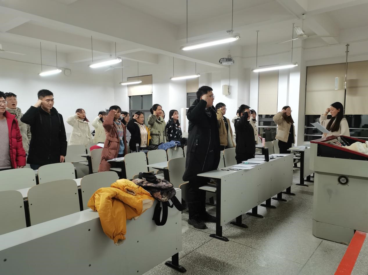 “我志愿加入共产党,加入党的纲领……”会议宣布后,在党支部副书记张琳同志带领下,全体党员同志进行了庄严宣誓,慷慨激昂的说出对党和人民的庄严承诺和保证,也向大会表达了自身的想法与决心,不忘初心跟党走,在今后的学习工作中会不断完善自我,从点滴做起,身体力行,把为人民服务的信念作为学习动力,以严格的党员标准要求自己,做一名合格的党员,永葆党的青春活力,积极向优秀共产党员学习,争取早日正式加入中国共产党。大会的成功召开,为支部注入了新鲜血液,相信在未来的日子里,每一名成员都能够严格要求自己,发挥党员的先锋模范带头作用,不忘初心,继续前进!