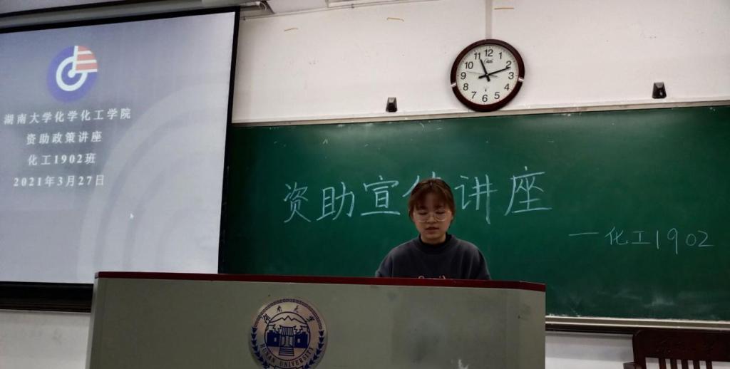 为了给同学们普及最新的资助政策以及奖助学金发放等情况,同时鼓励同学们积极参与公益活动,共建美好社会,化工1902班在2021年3月28日星期日中午11时于综合楼310开展了资助宣讲活动。本次宣讲由生活委员张徐丽主持,组织宣传委员谢雯静、黄亚楠辅助完成。其中到会14人,请假8人(事后生活委员会向他们传达会上主要内容)