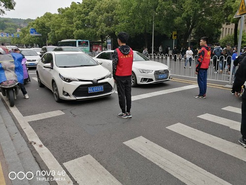 春天已至,天气已经渐渐转暖,但近期的长沙一直阴雨绵绵,在雨中撑伞指挥交通会有许多不便,但这也丝毫没有影响到志愿者们的积极性,他们对待本次志愿活动依然热情认真。秉持“道路以畅通为本,出行以安全为准”的原则,他们站在马路边引导过往的同学,当遇到过马路没有走斑马线的同学,志愿者们会耐心引导同学们走到斑马线上,保障同学们的安全;当遇到抢过马路的同学,志愿者们积极进行劝导,同学们也能听从志愿者的指挥,耐心等待下一次通行;本次活动中还看到了一些电动车抢行的现象,志愿者们依照规定进行了劝说和引导,大大降低了这类现象发生的概率,确保了交通的通畅。