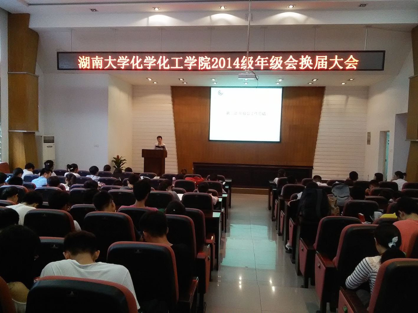 14级年级会换届大会在化工院报告厅举行,14级辅导员刘世明老师出席了换届大会。大会总结了上一届年级会一年来的工作情况,并成功选举产生了新一届年级会成员。