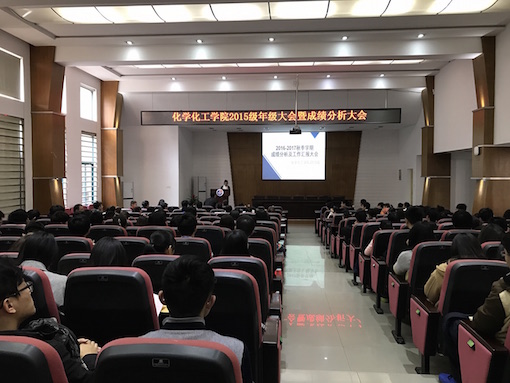 15级秋季学期成绩分析暨工作汇报大会在化工院报告厅举行。本次大会分析总结了15级上学期的学生工作情况与期末考试成绩,并制定公布了新学期工作计划。回顾过去,展望未来,本次大会在新学期伊始为化工院15级同学们树立了更加远大的目标,等待同学们一起实现。