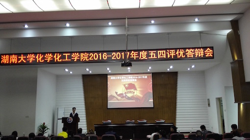 2016-2017年度五四评优答辩会在报告厅隆重举行。出席本次大会的领导老师有学院党委副书记陈义红老师、化工1502班阳卫军老师以及各年级辅导员老师。大会由院团委副书记李晨昕同学主持。