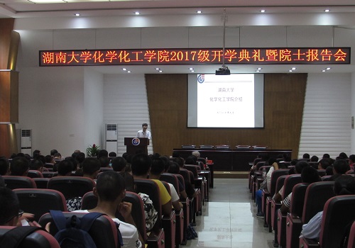 2017级本科生开学典礼在院报告厅成功召开。中国科学院院士俞汝勤、学院党委书记王玉枝教授、院长蒋健晖教授、党委副书记陈义红老师、副院长尹双凤教授、聂舟教授、李永军教授、崔坤在老师,化学系党支部书记宦双燕教授、化工系系主任卢彦兵教授、实验中心主任、化工1703班班主任郭栋才教授等17级全体班主任和学工办全体老师,17级新生辅导员曾芷兰老师主持此次典礼。