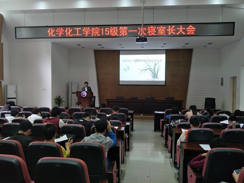 15级第一次寝室长大会在化工院报告厅按时举行。出席本次大会的有化工院15级生活股长夏忠诚和15级全体寝室长,大会讨论了15级目前寝室存在的问题,并制定了特别查寝制度。而本次大会也旨在改善寝室风气,督促同学们养成良好的生活作息习惯