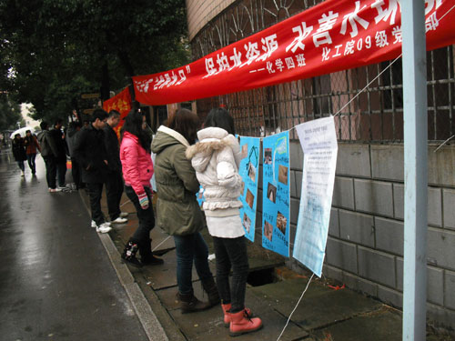 3月22日第二十届世界节水日,3月22日-28日是第25个“中国水周”。为了提高同学们的节水意识,传播新型的节水理念,培养同学们养成良好的节水习惯,使同学们更加深刻地了解到水资源短缺的问题,建设节约型校园。09级化学四班联合经典三级
