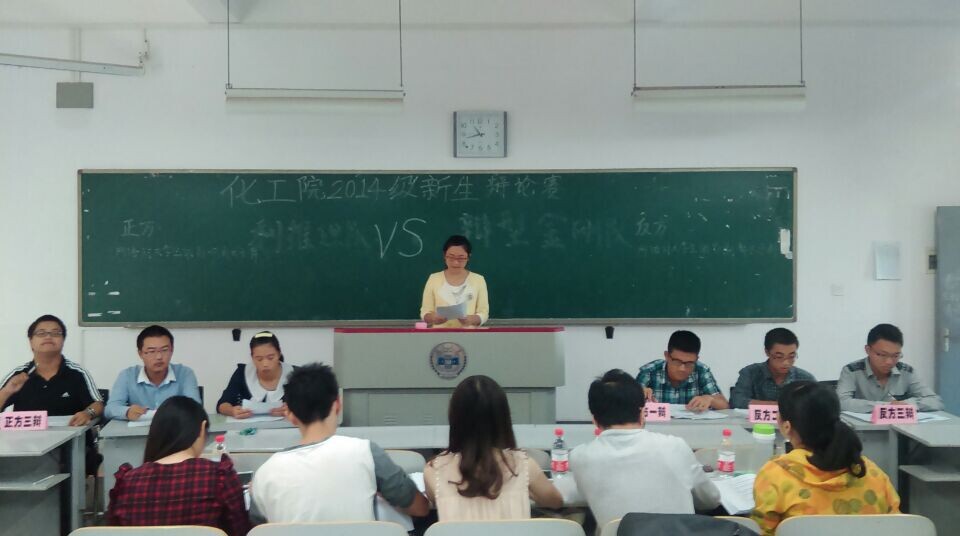 新生辩论赛在综合楼212、213教室成功举行。本次辩论赛邀请到了院学生会分团委副书记、经典三级副主席、化工院辩论队优秀队员担任评委。14级新生踊跃报名,热情参与,辩论赛吸引了同学们的广泛关注。
