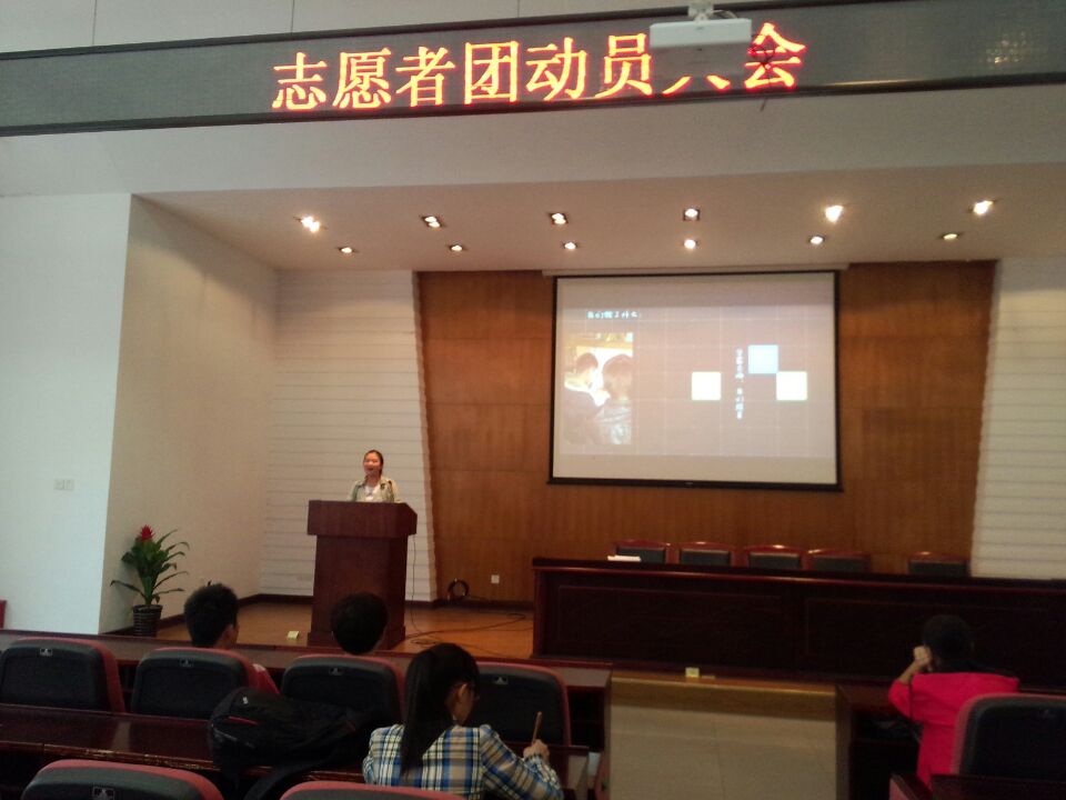 会议首先是团委书记陈晓晖老师讲话。陈晓晖提出“老组织新力量”,希望志愿者团成员之间相互配合,将志愿者工作做的更好,并说对志愿团的未来寄托了极大的希望。