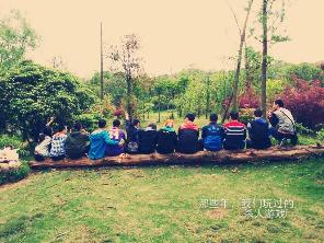这一段不短的的路途,被同学们边走边聊中迅速走过。很快一行人就到了目的地桃子湖,三月的时节桃子湖正散发着它应有的魅力,绿色盎然吸引着游人驻足。同学们穿过湖上小桥,进入中央绿草区,团支书先为大家选择一个草色茂盛的地方作为驻脚点,同学们放下手中的包袱之后很是轻松,几个同学更是对此时的桃子湖好奇不小,稍稍远离据点开始欣赏美景。正巧旁边有个横倒的树干,不长不短,同学们坐在上面正好做满,于是请游人帮忙给班级拍照留念作为以后的回忆。在时间差不多时,团支书开始招集同学们玩游戏,抱团,uno牌,狼人游戏。尤其是在狼人有事中,大家你猜我我猜你,总是有几个同学冤枉地被投票杀害,好不热闹。