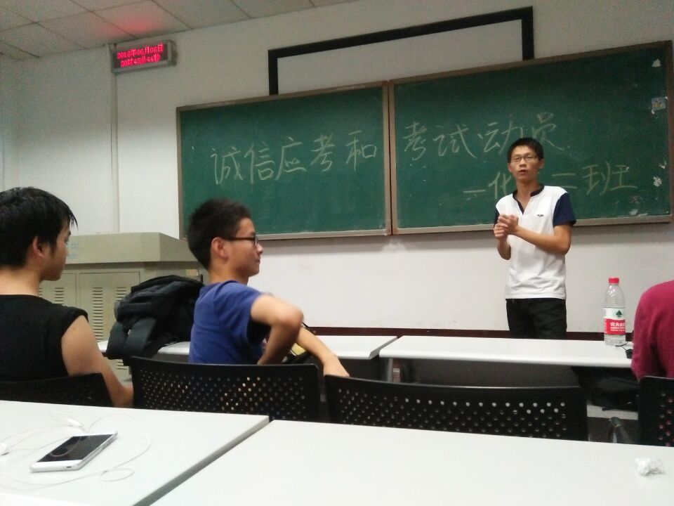 化学工程与工艺1502班在中楼203举行了"积极备考,诚信应考"动员班会。