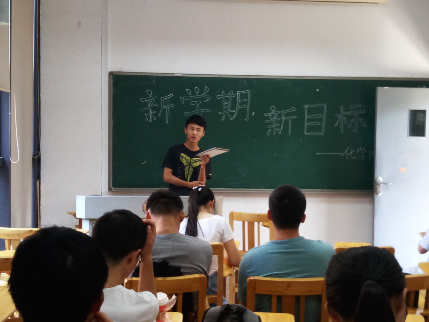 2016年9月3日,化学1403班召开了新学期的第一次班会,此次班会的主题为:新学期,新目标。班会由班长王琛主持,辅导员刘世明老师、班导师羊小海老师和化学1403班全体成员均参加了此次会议。