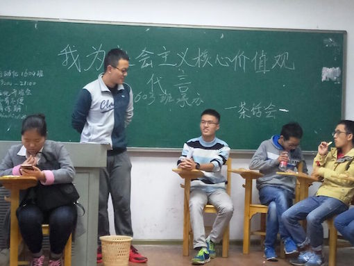 化学工程与工艺1603班以“我为社会主义核心价值观代言”为主题的团日活动顺利开展,本次团日活动是以茶话会形式开展,由团支书张显明同学主持,活动由主题介绍、主题演讲、时事畅谈及活动总结四个环节组成,活动中化工1603班全体同学齐聚一堂,分享各自对社会主义核心价值观的看法,畅谈天下事,现场氛围很是活跃。