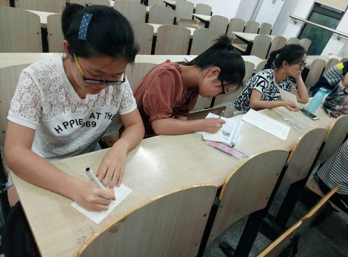随后,心理委员向同学们分发背面印有湖大特色景观的明信片并要求同学们将心里要对母亲说的话写在明信片上。在远离家乡,外出求学之后,不在母亲身边也很久了,思念母亲之心便更加强烈。于是,同学们将这份思念之意、感恩之情融入到笔下的文字之中。其中“母亲含辛茹苦,养育儿二十载”是对母亲无私付出的感激与敬佩;“离开家快半年了,妈,我想你了”是对母亲最朴实也最动人的思念;“妈,母亲节快乐”则是同学们说得最多,亦是最珍贵的祝福。同学们不时相互交流,倾诉着对自己母亲的祝福与牵挂。