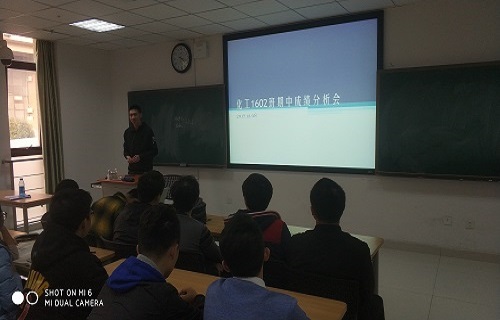 化工1602班全体成员在班长王子恒,学习委员刘永炜的主持下召开了期中考试成绩分析会暨12月第一次班会。此次成绩分析会及时的指正了目前同学们在学习上存在的问题并为即将到来的期末考试做好准备。各班委也借此机会汇报了近期的班级工作,并进行了评教系统培训工作。
