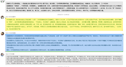 本科化工党支部根据校学生工作部要求,于七月一日九时组织全体党员在云端观看“高校党组织战‘疫’示范微党课”,并开展了后续的研讨交流活动。