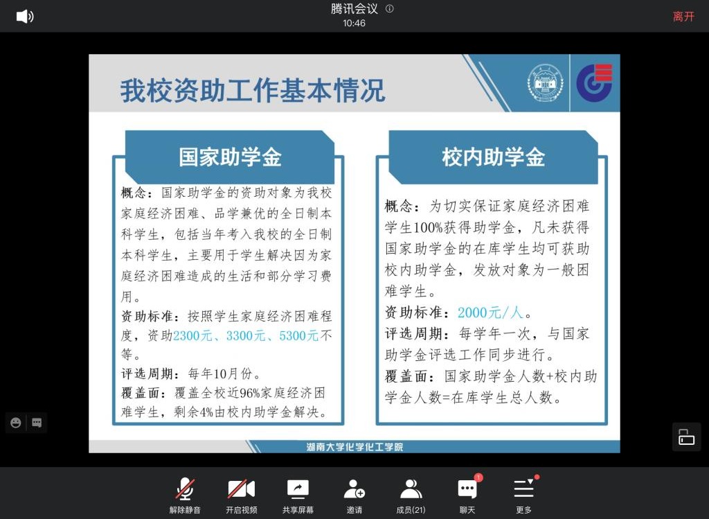 资助助管王一鸣同学为大家详细的介绍了国家及校院各级资助政策,确保各位19及20级爱心使者能够将资助政策更好的宣传至班内,宣传至每一位需要的同学处。