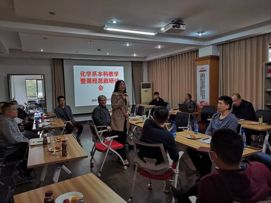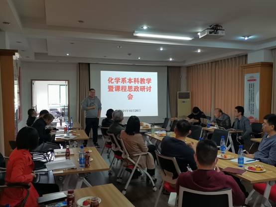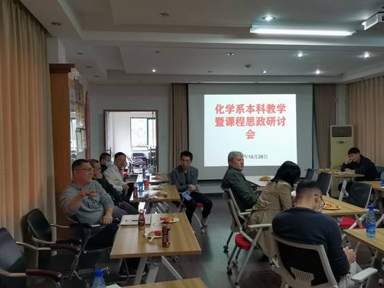 为深入贯彻教育部关于深化本科教育教学改革、全面提高人才培养质量的意见精神,推进化学一流学科建设,落实立德树人的根本任务,提升人才培养质量与教育教学水平,化学系组织召开了本科教学暨课程思政研讨会。研讨会于2021年10月26日15点在学院党员之家进行。党委书记王玉枝、党委副书记刘松、副院长李永军、来院学习交流的新疆师范大学经典三级