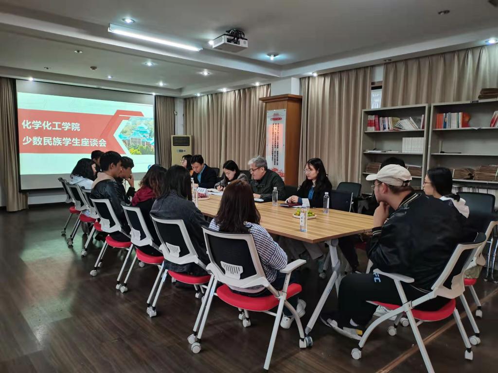 少数民族学生座谈会在化工院D区党员之家召开。新疆内派老师王凤华、来院学习交流的新疆师范大学经典三级