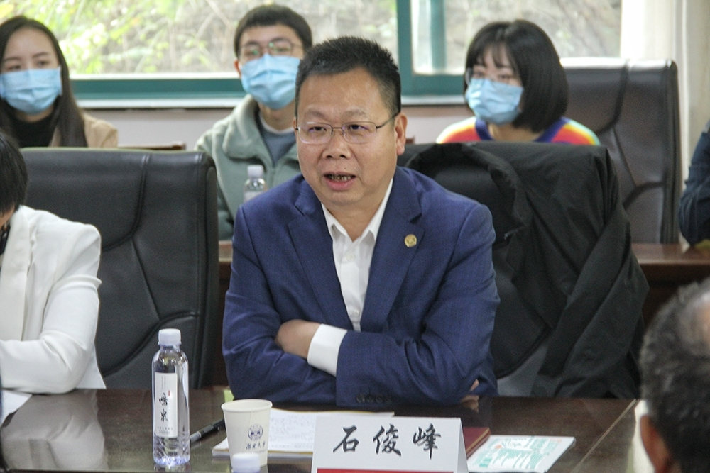 全方位的深度合作,共同探索一条人才培养的新道路;三是希望未来自身能为母校的发展做出更大的贡献,以更加优异的成绩回馈师恩,反哺母校。石俊峰董事长的讲话高瞻远瞩、情真意切,完美地诠释了湖大学子经世致用的责任担当、爱国爱民的赤子情怀,获得与会人员的阵阵掌声。