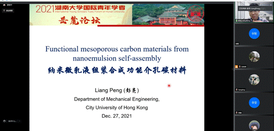 香港城市大学彭亮博士作了题为《纳米微乳液组装合成功能介孔碳材料》的学术报告。