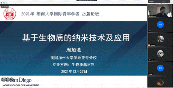 美国加州大学圣地亚哥分校周加境博士作了题为《基于生物质的纳米技术及应用》的学术报告。