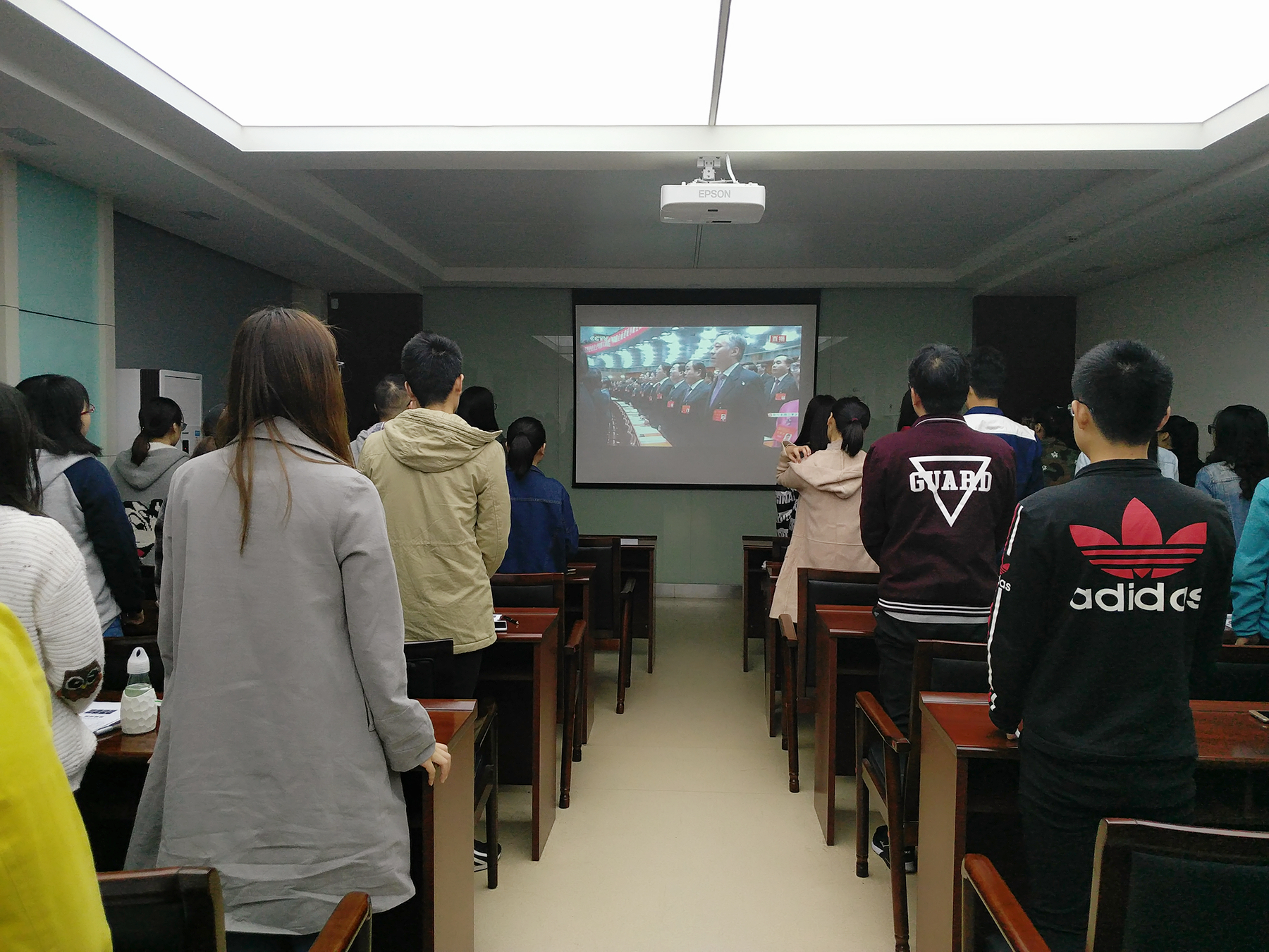 2017年10月18日,为迎接党的第十九次全国代表大会的召开,经学校统一安排,学院统一组织,经典三级 全院师生分别在复临舍报告厅、实验室、寝室观看十九大的开幕式直播。