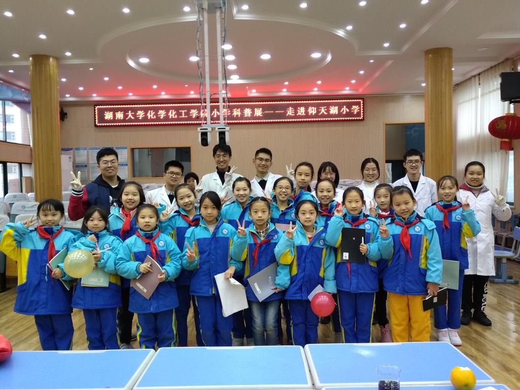 姜帆(后排左一)参加小学科普展览。