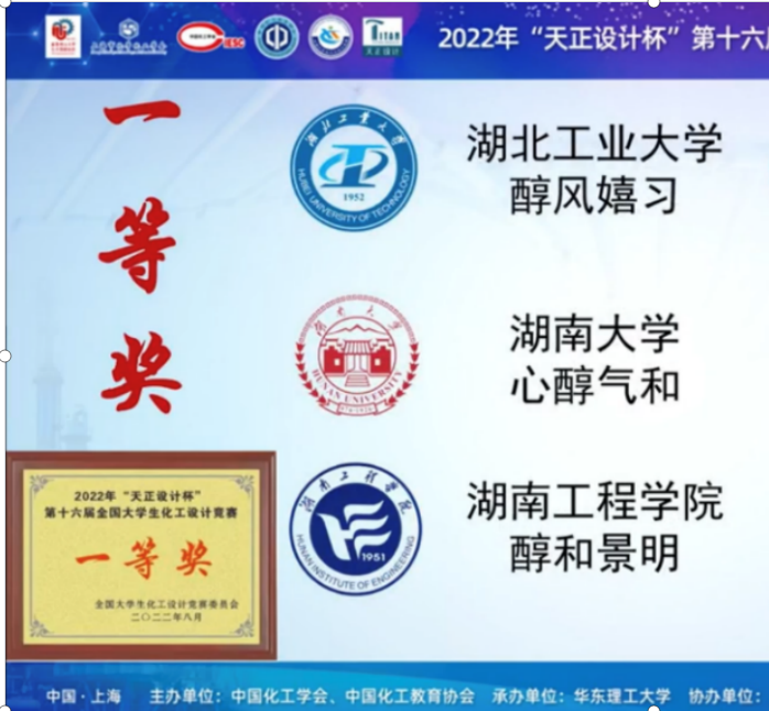 8月17日-8月22日,第十六届全国大学生化工设计竞赛全国总决赛在线上举行,经典三级