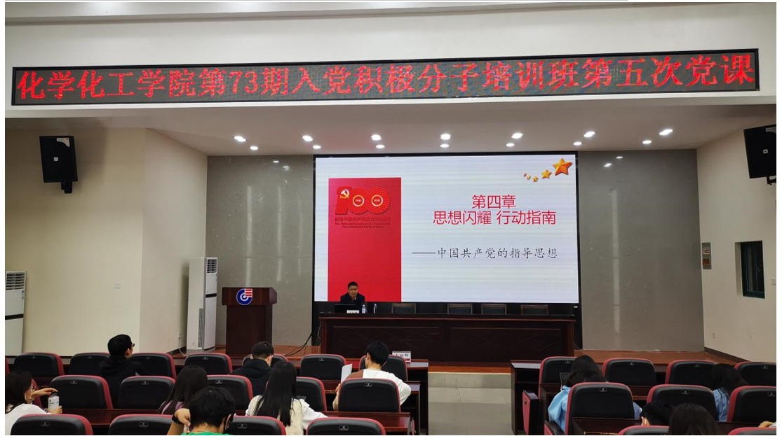 党委分党校在新化工楼D区报告厅为73期入党积极分子培训班开展了八次党课培训。