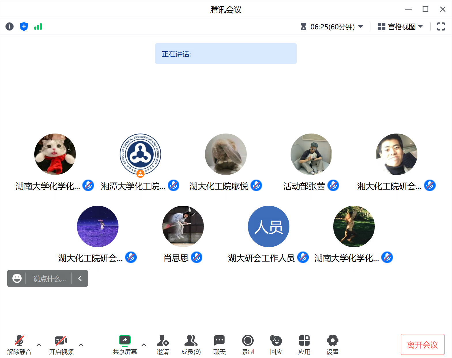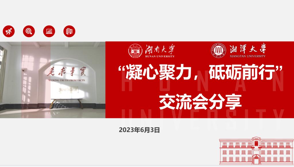 研会于2023年6月3日下午15:00与湘潭大学化工院研究生会开展“凝心聚力,砥砺前行”线上交流活动。本次活动由湘潭大学化工学院研会主席曹哲恒同学主持,双方研会骨干成员参与。