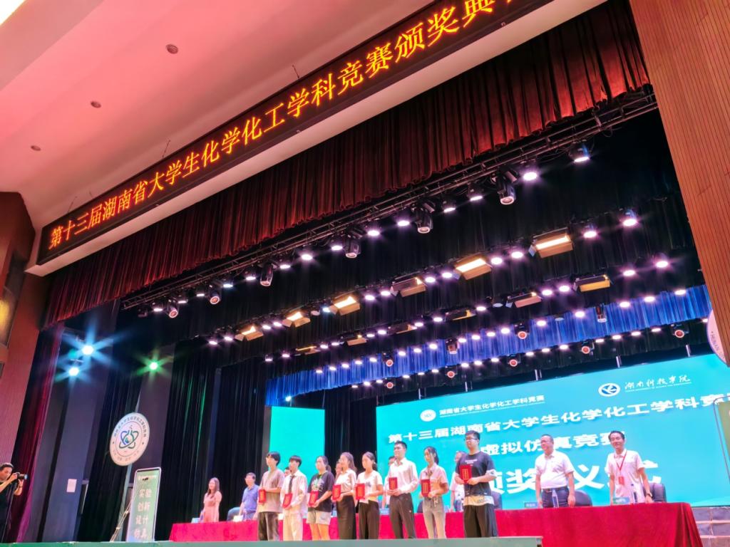在第十三届湖南省大学生化学化工学科竞赛决赛中,我校绿色创客俱乐部参赛团队获一等奖3项(化工设计、虚拟仿真、课外创新作品)、三等奖1项(化工设计)。