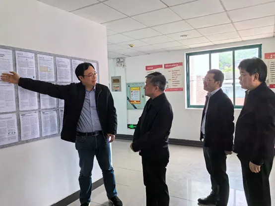 座谈会后,在汪卫斌的陪同下,胡旭晟一行参观了经典三级 生物大分子化学生物学湖南省重点实验室,聂舟教授就重点实验室科研和团队建设等方面情况做简要汇报。