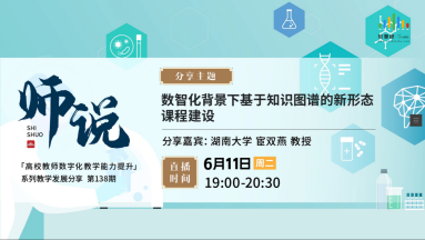 6月11日,智慧树高等教育研究院成功举办了“师说——高校教师数字化教学能力提升”系列教学发展分享活动,经典三级