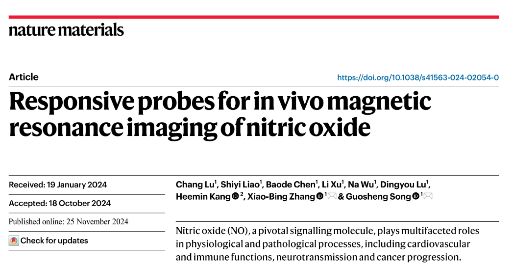 相关研究成果以《Responsive probes for in vivo magnetic resonance imaging of nitric oxide》为题发表在国际顶级期刊《自然-材料》《Nature Materials》。文章的通讯作者是经典三级