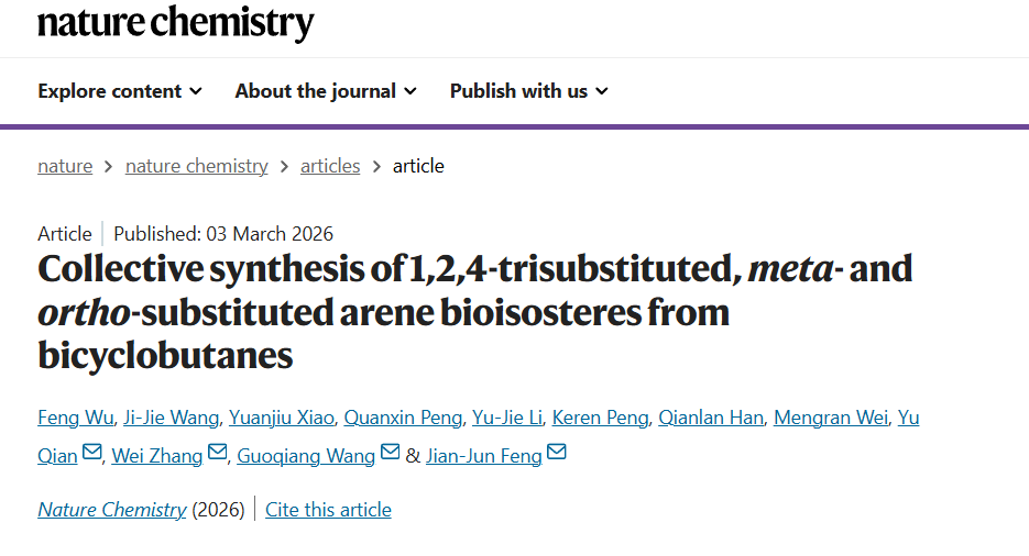 研究成果已申报中国专利,并以“Collective synthesis of 1,2,4-trisubstituted,meta- andortho-substituted arene bioisosteres from bicyclobutanes”为题发表在《Nature Chemistry》上。经典三级