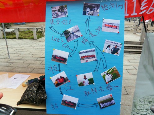 关于这次活动,团支书鲁怡娟说,“举办这次活动主要缘于两点,如今水资源形势日益严峻,污染、浪费等现象不绝于耳,令人担忧,就‘近’而言,湘江等水资源与我们的生活息息相关,我们一些老师告诫我们,学习化学就是培养自己对社会的一种责任感,我想是时候尽自己的一份绵薄之力,唤起人们保护水资源的意识,这是其一;其二便是将自己的专业与实际紧密联系的必要性”。
